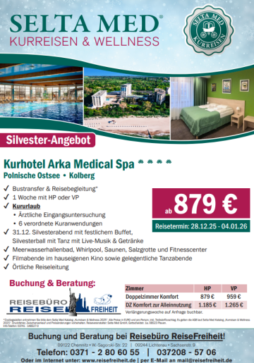 | Doppelzimmer Komfort Halbpension | 879,- € |