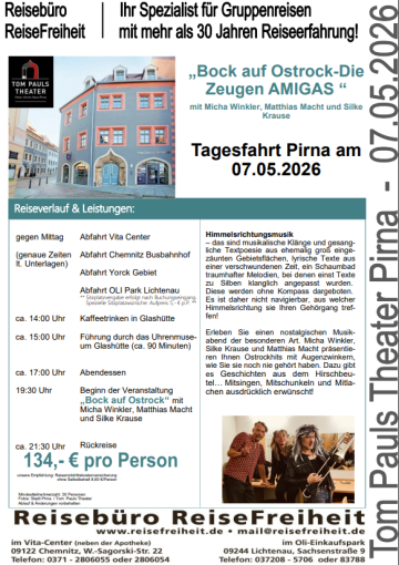 | Tagesfahrt ab/an Chemnitz VITA-Center | 134,- € |