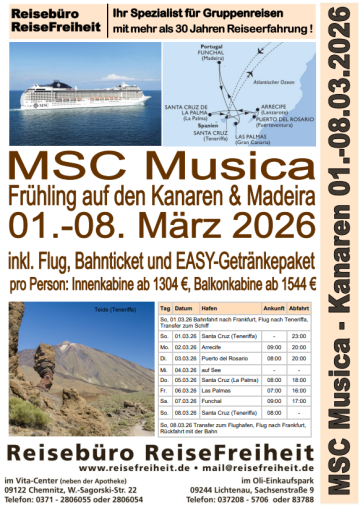 Veranstalter: MSC Cruises GmbH, Garmischer Straße 7, 80339 München